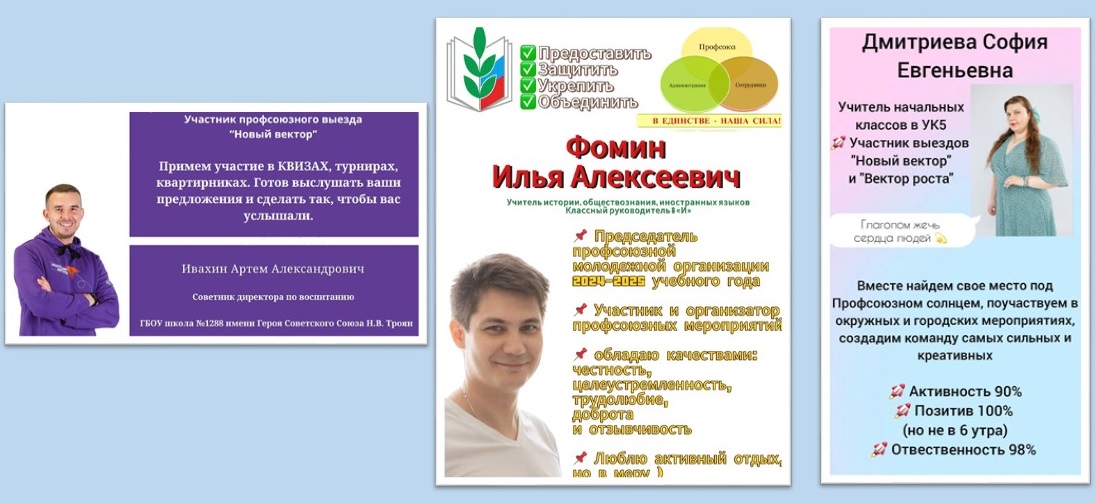 На должность председателя претендовали три кандидата: Дмитриева София Евгеньевна- учитель, Ивахин Артем Александрович- Советник директора по воспитанию, Фомин Илья Алексеевич- учитель.