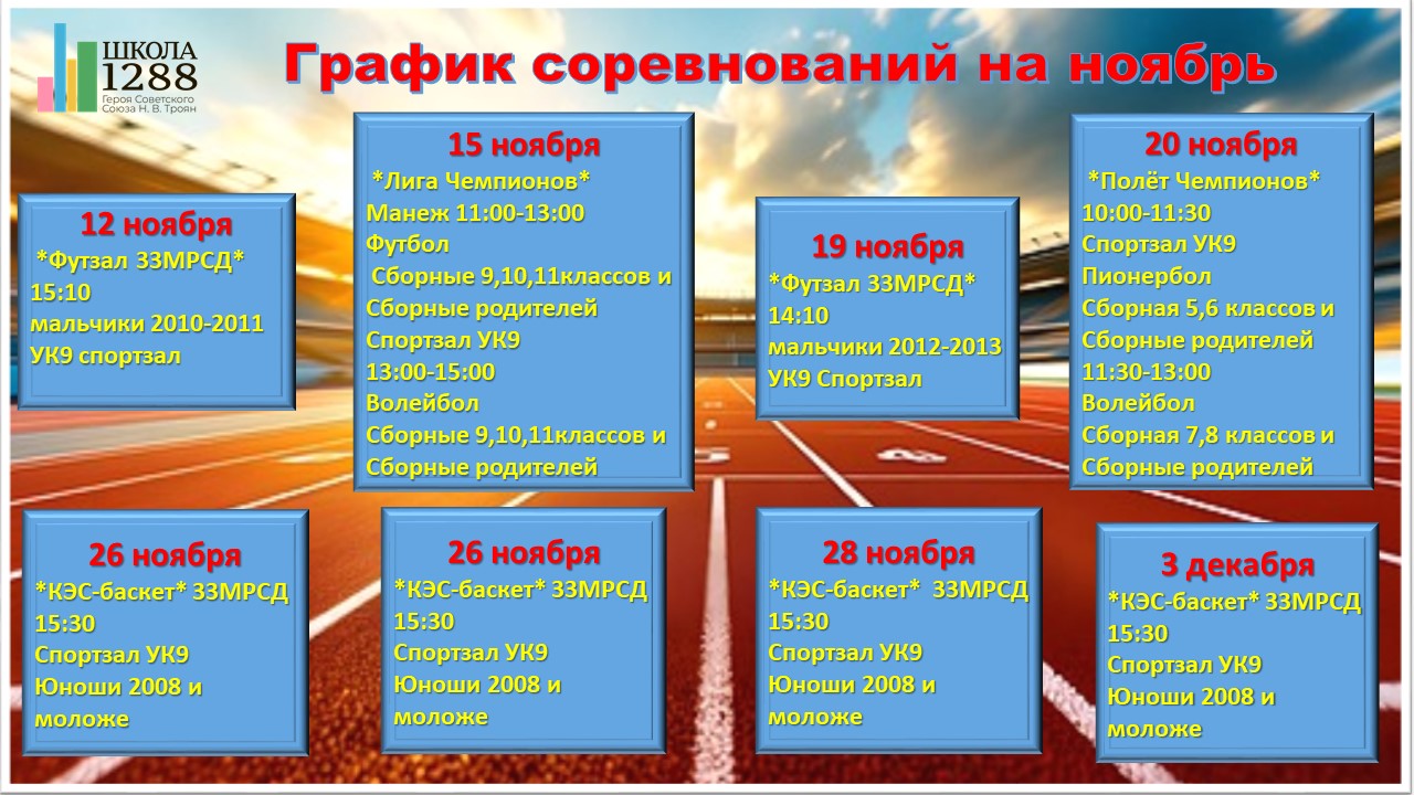 «Лига чемпионов» — футбол и волейбол для 9–11 классов 15 ноября.